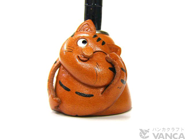 ねこ デスクペンスタンド レザー 本革 VANCA/バンカクラフト革物語 25768