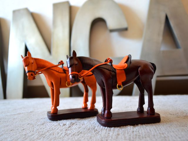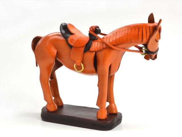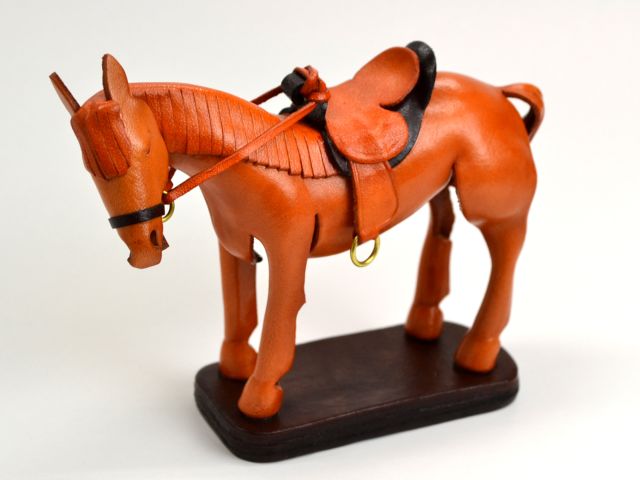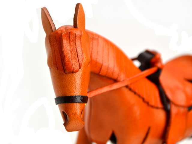 バンカクラフト革物語 「ホースオーナメント」。精巧なつくりでとても高級感のある馬の形をした本革製オーナメントです。です。黒茶と金茶の二種類あります。デスクに手作りならではの温かみをどうぞ。プレゼントにも喜ばれています!VANCAのこだわり