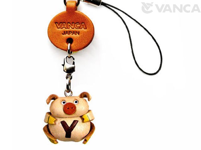 イニシャル動物 ぶた Y 携帯ストラップレザー 本革 VANCA/バンカクラフト革物語 40485