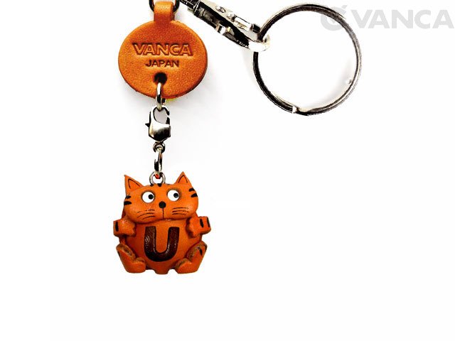 イニシャル動物 ねこ U ドコデモキーホルダー/レザー 本革 VANCA/バンカクラフト革物語 50451