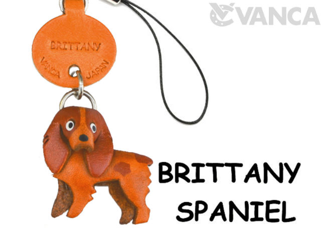 ブリタニースパニエル 犬 携帯ストラップ/レザー 本革 VANCA/バンカクラフト革物語 40879