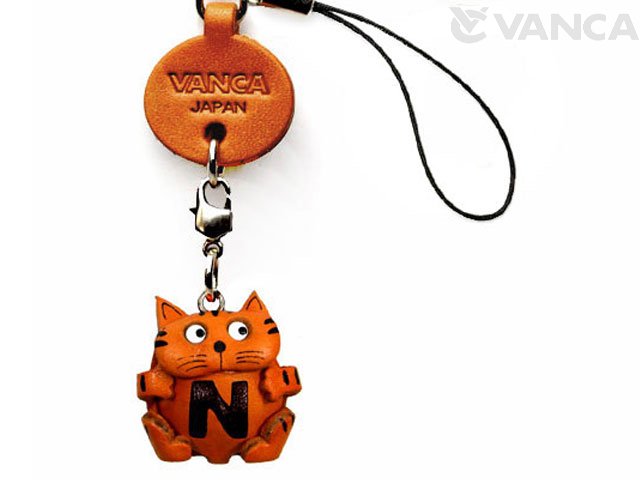 イニシャル動物 ねこ N 携帯ストラップレザー 本革 VANCA/バンカクラフト革物語 40444