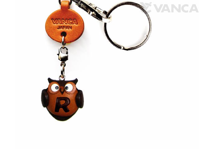 イニシャル動物 ふくろう R ドコデモキーホルダー/レザー 本革 VANCA/バンカクラフト革物語 50418