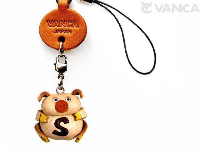 イニシャル動物 ぶた S 携帯ストラップレザー 本革 VANCA/バンカクラフト革物語 40479