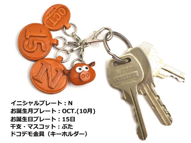 パーツ組み合わせ誕生日 プレート 14 日 /キーホルダー/ストラップ/レザー 本革 /VANCA/バンカクラフト革物語 20514