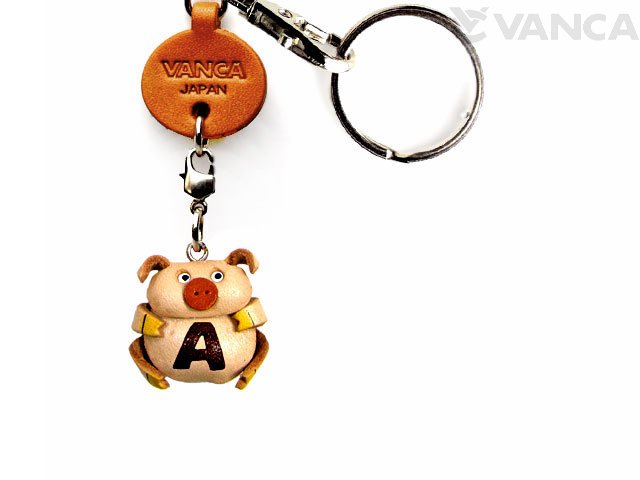 イニシャル動物 ぶた A ドコデモキーホルダー/レザー 本革 VANCA/バンカクラフト革物語 50461