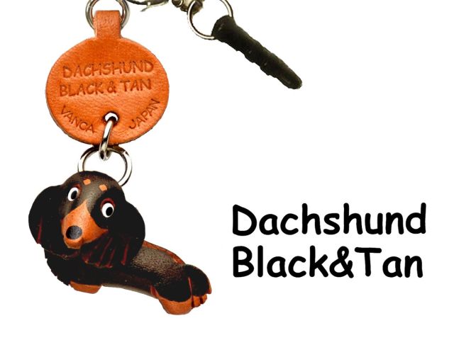 ダックスフンドロングヘアー ブラックタン 犬 イヤホンジャックアクセサリー/レザー 本革 VANCA/バンカクラフト革物語 43876