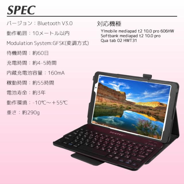 Y!mobile MediaPad T2 Pro 606HW au Qua tab 02 softbank mediapad t2 Pro 10.0 Pro 専用 レザーケース付きキーボードケース 日本語配列 入力対応 タブレットキーボード Bluetooth キーボード ワイヤレスキーボード