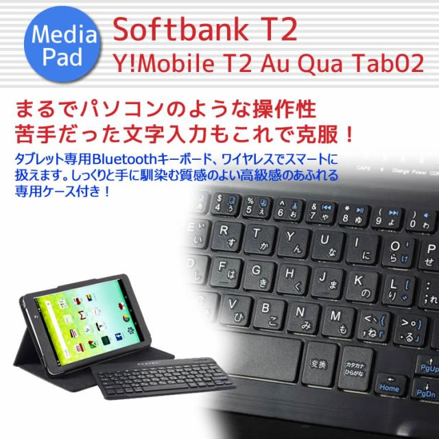 au tab02 Bluetooth キーボード ワイヤレスキーボード Y!mobile MediaPad T2 キーボードケース 日本語配列 タブレットキーボード