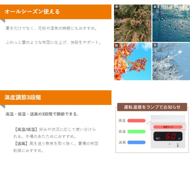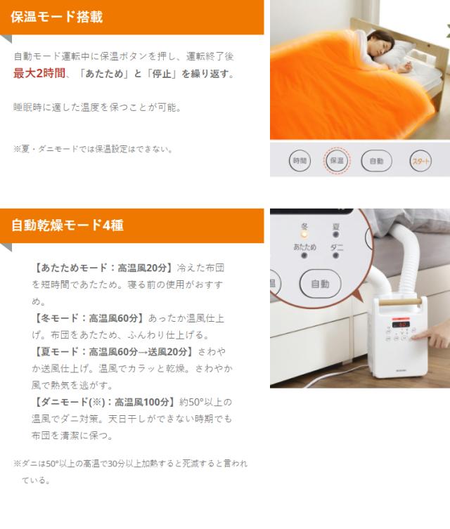 - 喘息持ちの息子がダニハウスダストに弱いので 布団乾燥を購入 とにかく今の季節は暖かい布団に入れるので すごくいいです