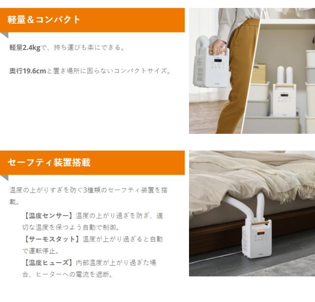 布団乾燥機 アイリスオーヤマ ダニモード ダニ 対策 ツインノズル 小型 軽量 コンパクト 布団 汗 湿気 送風 夏モード 靴乾燥 2足同時乾燥 梅雨 花粉 保温 あたため オールシーズン タイマー付 マット不要 FK-W2-W ふとん乾燥機 カラリエ *