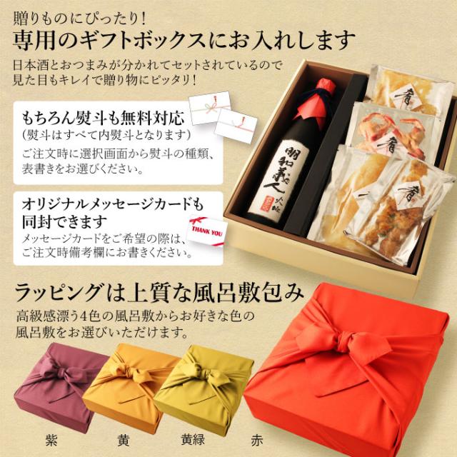 日本酒 おつまみセット 純米大吟醸 明和義人 720ml×海鮮珍味4種セット 常温 乾きもの 退職祝い ギフト プレゼント 化粧箱 結婚祝い 内祝い 男性 女性 上司 高級 誕生日 還暦祝い 古希祝い 喜寿祝い 開業祝い 快気祝い 新潟