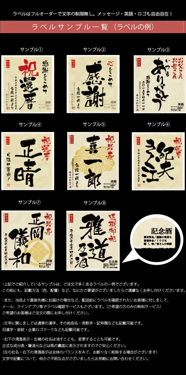 ちぎり和紙にお名前や言葉を入れてお届けするフルオーダー!退職祝いプレゼントや定年退職の記念品には純金箔入りで豪華に演出!更に入社日や誕生日の新聞一面と20年間のオリジナル年表が付いた世界でひとつだけの純米大吟醸!ご不明な点はご遠慮なくお問い合わせください。TEL:025-378-2631