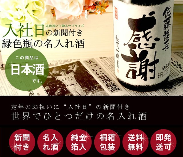 退職祝い 名入れ日本酒 純米大吟醸 入社日の記念日の新聞付き 【緑樹】 1800ml ギフト プレゼント 男性 女性 祖父 祖母 高級 父 母 上司 恩師 先生 兄弟 親戚 記念品 贈答品 送別会 おじいちゃん おばあちゃん 桐箱入り 風呂敷包装