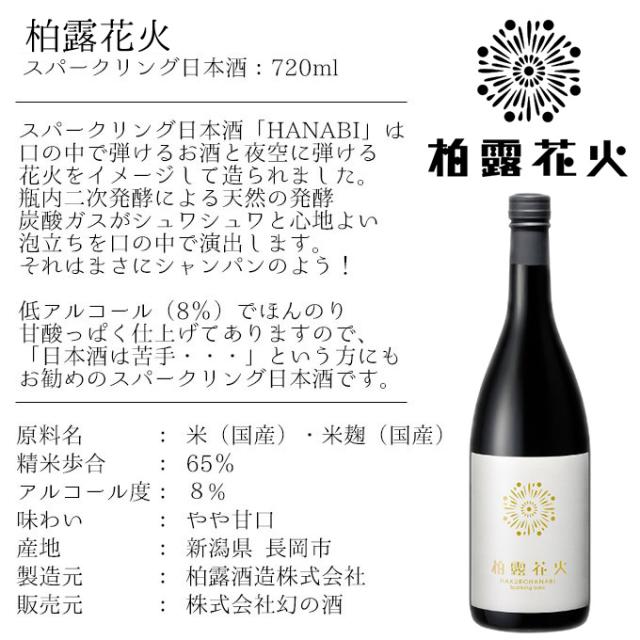 お歳暮 冬ギフト スパークリング日本酒 甘口 【柏露花火】 Sparkiling SAKE 720ml ギフト プレゼント 退職祝い 誕生日 結婚祝い 内祝い 新潟地酒 おしゃれ 純米酒 上司 男性 女性 贈答品 記念品 新築祝い 開店祝い 低アルコール
