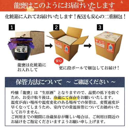 特約店流通の「しぼりたて龍甕」とは異なり、生酒を熟成させてから販売される幻の酒だけの限定品です。ネット通販では幻の酒一社のみの日本酒です。