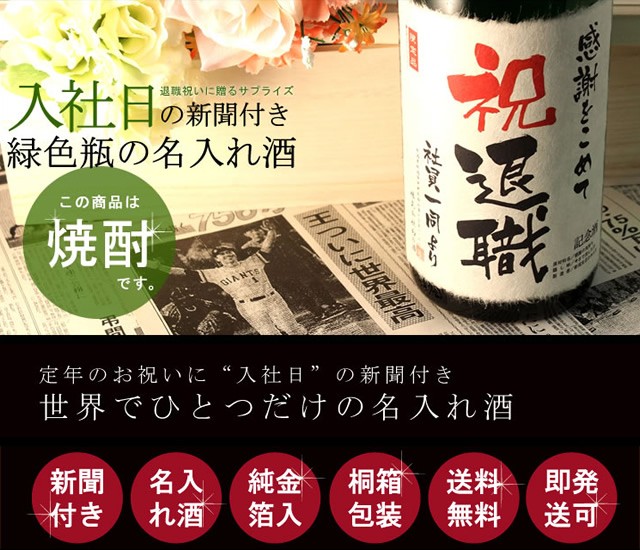 退職祝い 名入れ酒 入社日等記念日の新聞付き酒粕焼酎【華乃翠】1800ml ギフト プレゼント 定年退職 記念品 贈答品 男性 女性 祖父 祖母 高級 父 母 おじいちゃん おばあちゃん 上司 恩師 先生 兄弟 親戚 同僚 送別会 桐箱入り 風呂敷包装