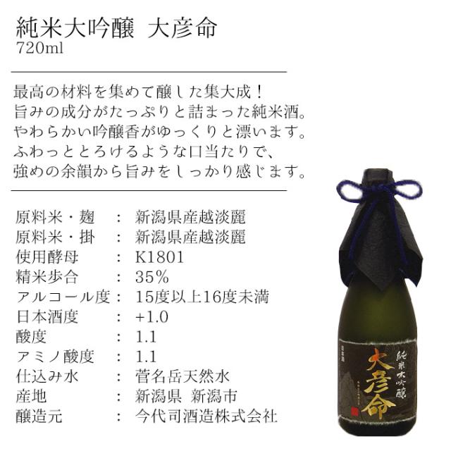お歳暮 冬ギフト 日本酒 純米大吟醸 【大彦命】 720ml ギフト プレゼント お酒 退職祝い 結婚祝い 内祝い 男性 女性 上司 誕生日 還暦祝い 古希祝い 喜寿祝い 開業祝い 快気祝い 昇進祝い 新築祝い 贈答品 新潟地酒 お祝いの品 周年記念