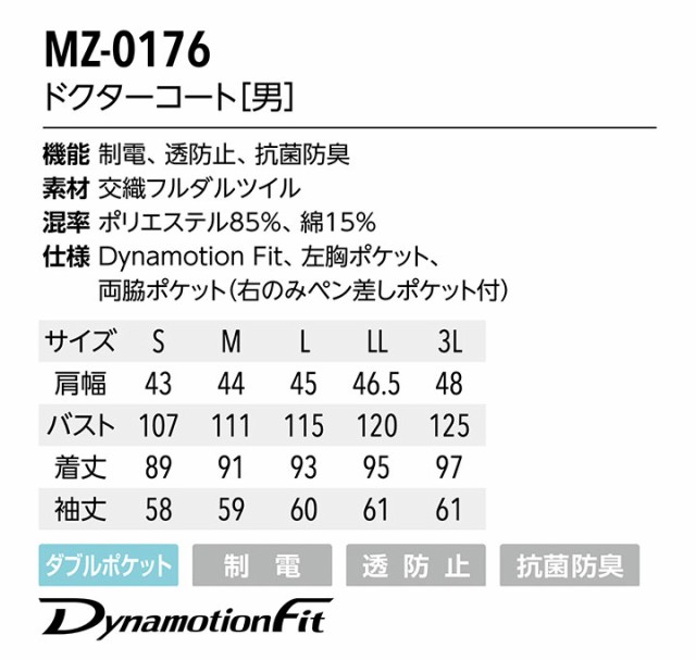 ドクターコート ミズノ×コラボ商品 MZ-0176 MIZUNO メンズ 医師 医療用 白衣 長袖 制電 抗菌 消臭 透け防止 4色 男性用 チトセ