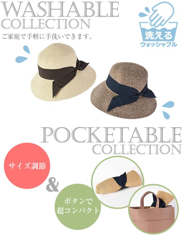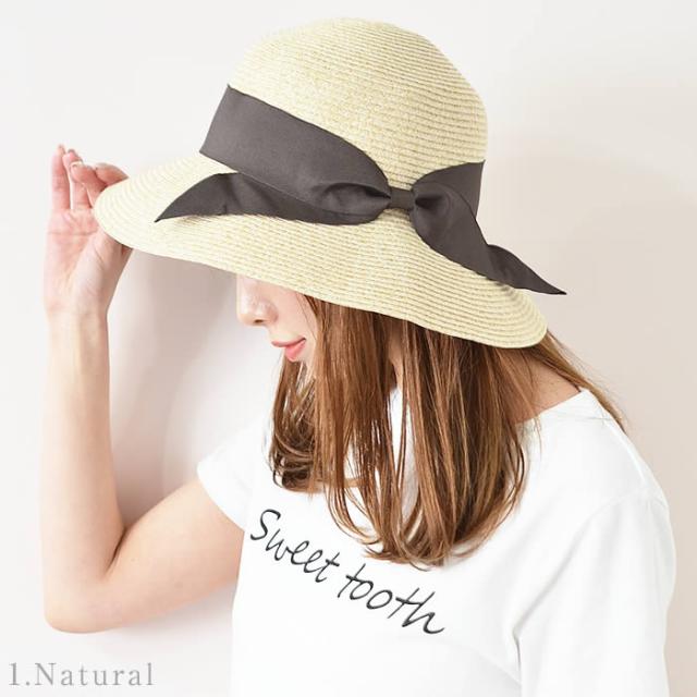 ストローハット 宅配便配送 ストローハット レディース ストロー ハット つば広ハット つば広 麦わら帽子 麦わら 帽子 リボン 紫外線対策 UV対策 ウォッシャブルミックスハット カービーズ