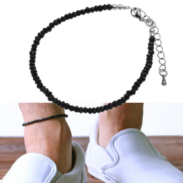天然石アンクレット ブラックスピネル メンズ レディース 足首 シンプル ブラック 黒い石 カッティング パワーストーンアンクレット おしゃれ 人気 男性 女性 baetc-0128