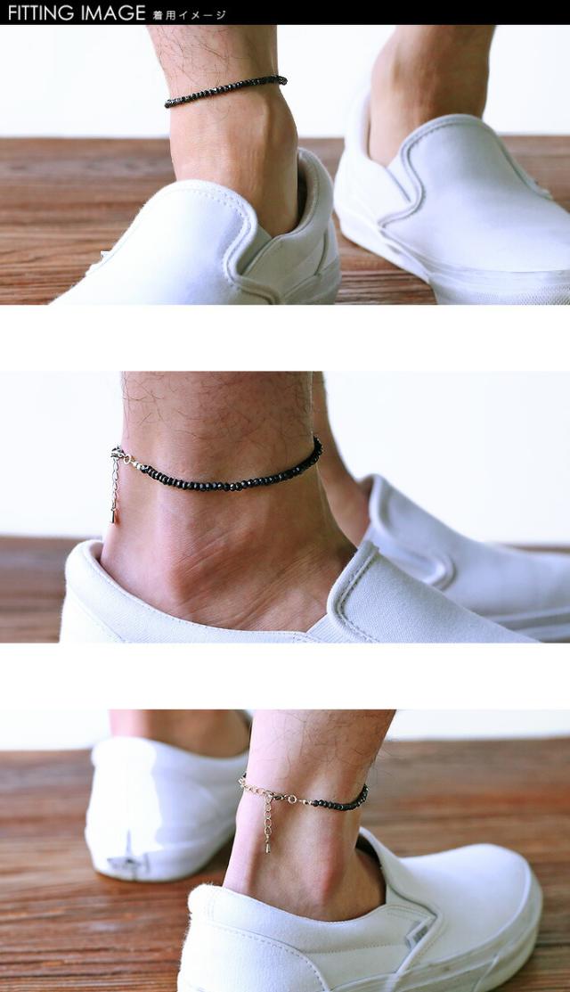 ブラックスピネルストーンだけのシンプルなデザインですが、1つ1つのスピネルが上品にきらめくので存在感は十分。細めなので他のアンクレットと重ねて着けるのもオススメです。足元に大人な雰囲気を醸し出してくれるアイテムです。