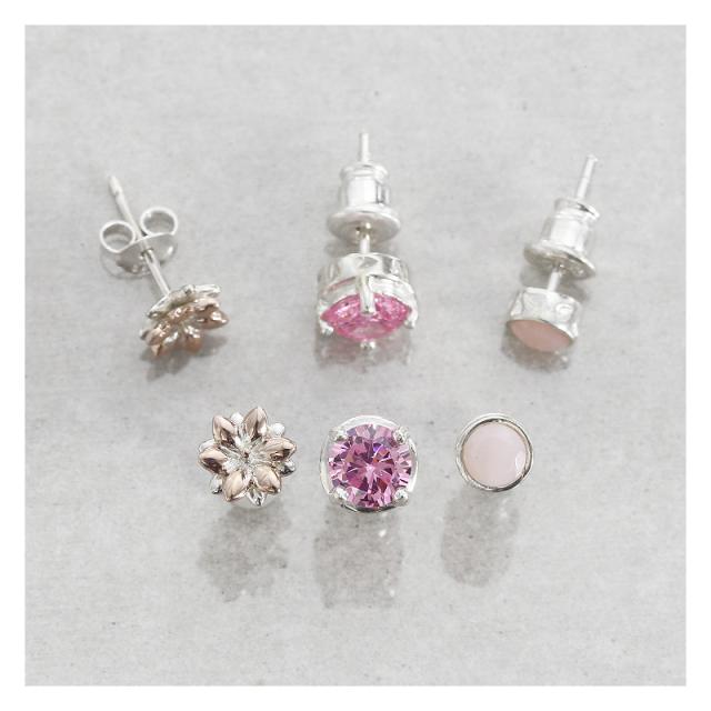 シルバーを基調とした台座部分に直径5mmのピンクオパールを埋め込んだスタッドピアス。台座の側面には桜の花びら模様が彫られており、繊細ながらも華やかなデザインとなっています。シルバー×ピンクの淡い色合わせはどんなファッションも上品に仕上げてくれますよ。さりげない和のテイストを取り入れたい方にもオススメです!