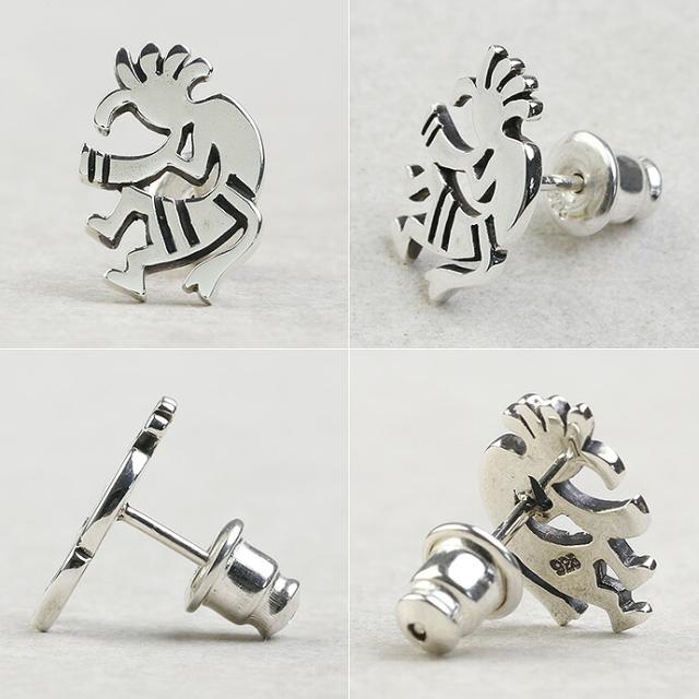 ピアス メンズ レディース シルバー925 ココペリ シルエット スタッドピアス ナバホ インディアンジュエリー メンズピアス 片耳用 (1個売り) Binich 20代 30代 40代 50代 プレゼント 男性用 アクセサリー bae-1437