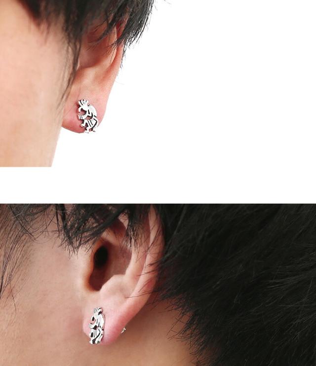 在庫限り シンプル ココペリ シルエット ピアス メンズ シルバー925 アクセサリー ネイティブ インディアンジュエリー系 シルバーピアス 片耳用 (1個売り)