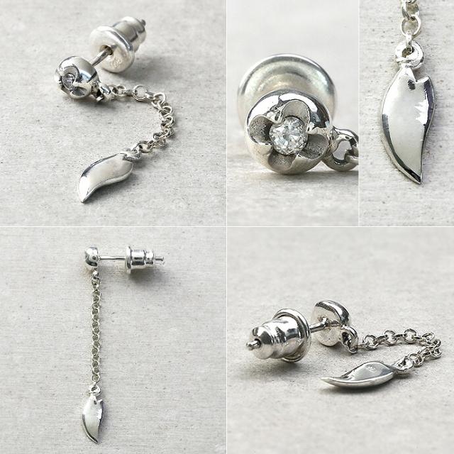 ピアス メンズ レディース シルバー925 桜 さくら 和風 和柄 ドロップピアス 揺れる キュービックジルコニア メンズピアス 片耳用 (1個売り)