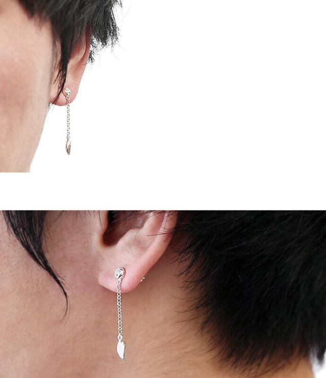 サクラ 花びら チェーン ドロップピアス シルバー925 アクセサリー 桜 メンズ シルバーピアス 片耳用 (1個売り)