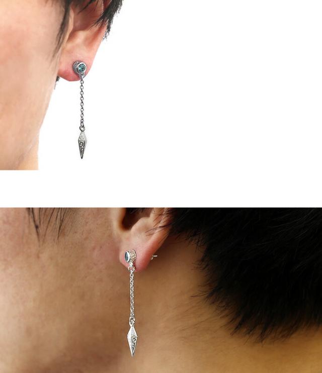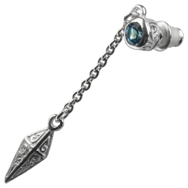 ロンドンブルートパーズ ドロップ チェーン チャーム ピアス メンズ シルバー925 アクセサリー シルバーピアス 片耳用 (1個売り)