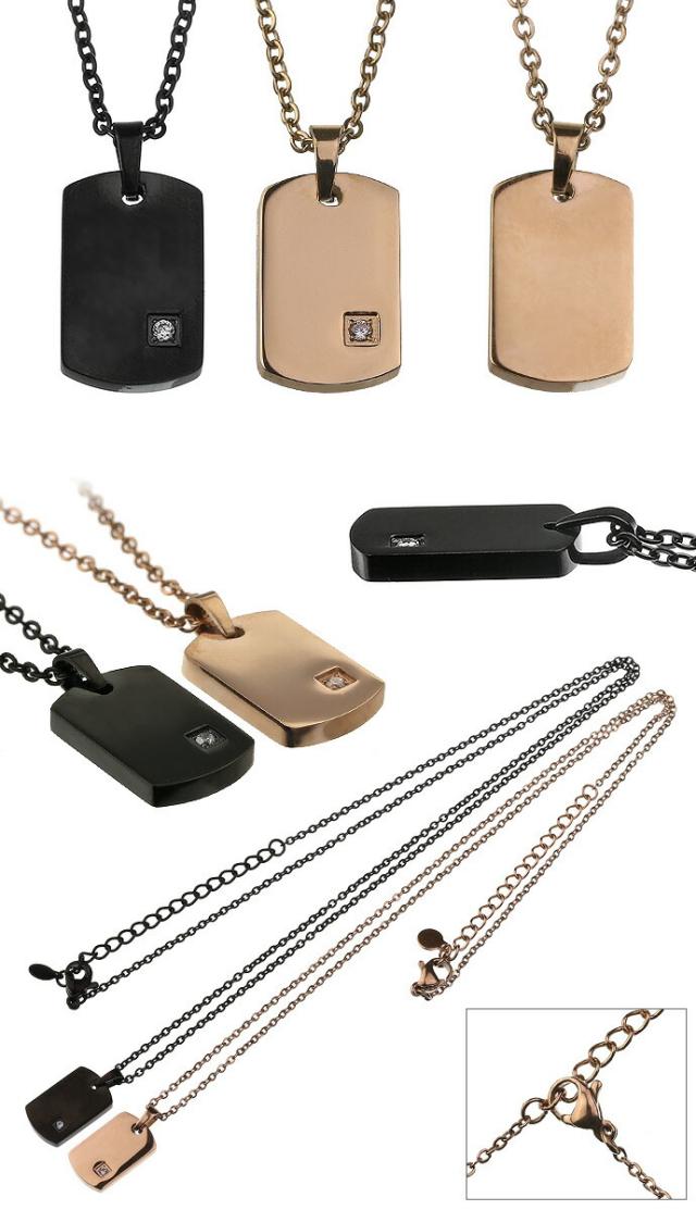 ■商品名:ペア販売 スモール プレート ジルコニア ペアペンダント ペアネックレス チェーンセット ドッグタグ ステンレスペンダント