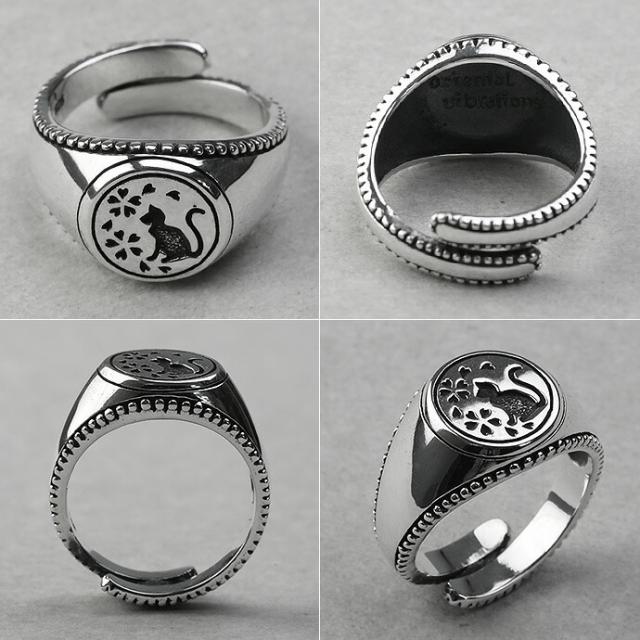 ■商品名:サクラ & キャット リング 印台 メンズ 指輪 メンズ 猫 ネコ 桜 シルバー925 アクセサリー シルバーリング