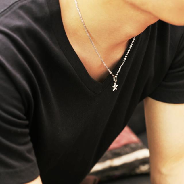 世代問わず人気のモチーフ・星(スター)のペンダントです。エッジを効かせた立体的なデザインは、首元でサイズ以上の存在感を放ちます。さりげなく品の良さと遊び心を演出したい大人の男のための、FLUIらしさが光るペンダントです。