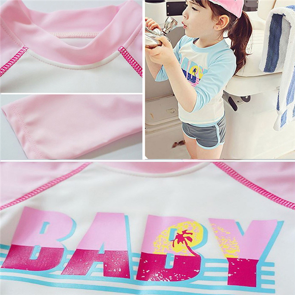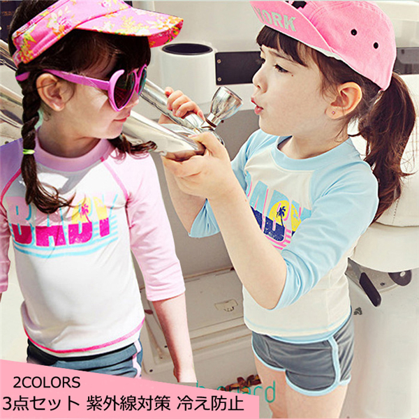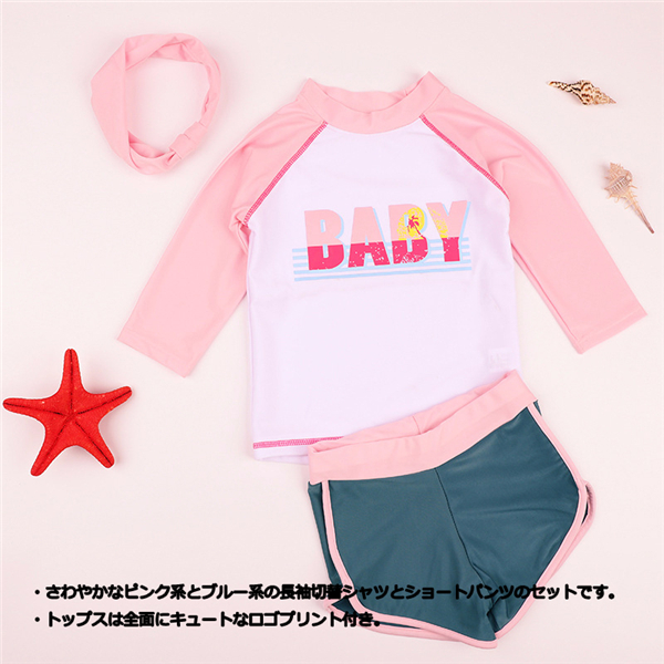 キッズ 水着 水着 女の子 子供水着 ガールズ 長袖 トップス 子ども ショートパンツ みずぎ パステル 紫外線防止 ラッシュガード DM便