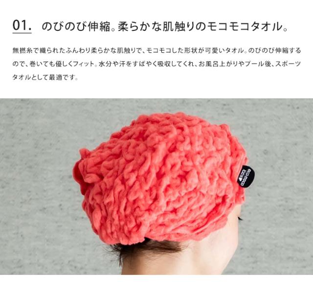 - 今治製タオルエコモコ、色や柄が豊富で機能性も良く、ずっと愛用してます。肌触りも柔らかくて、髪の毛を優しく包んでくれるタオルです。