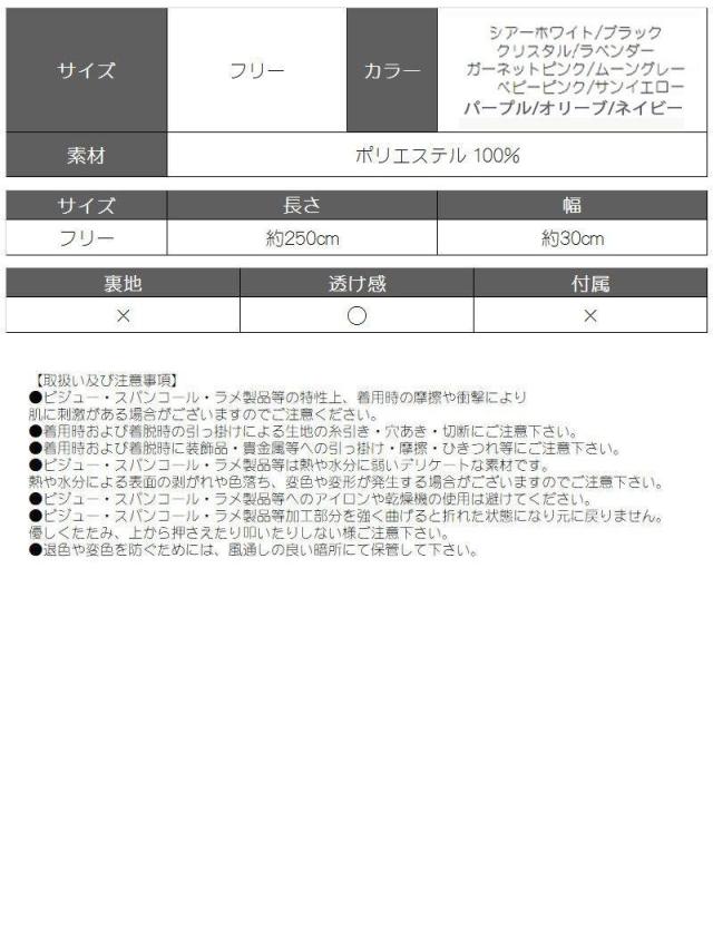 シアーホワイト/ブラック/クリスタル/ラベンダー/ガーネットピンク/ムーングレー/ベビーピンク/サンイエロー/パープル/オリーブ/ネイビー