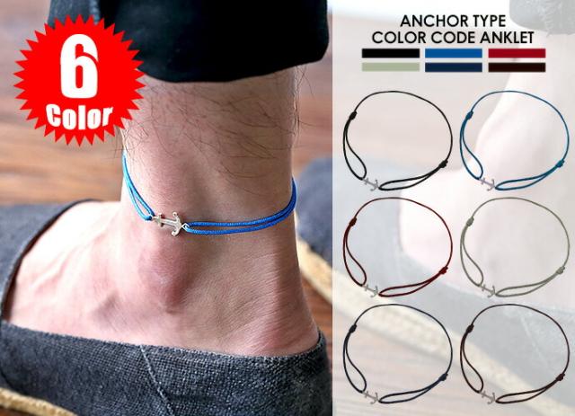 全6色 アンカー チャーム カラー コード アンクレット 細め シンプル シルバー925 アクセサリー メンズ レディース