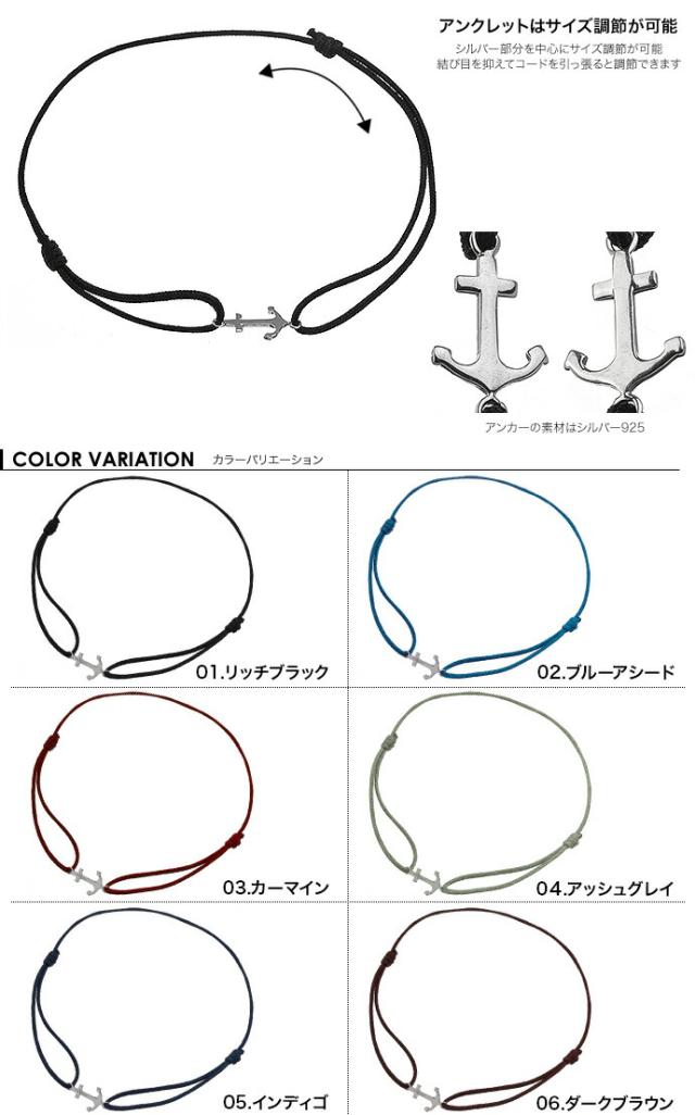 ミサンガ アンクレット つけっぱなし いかり シルバー925 メンズ レディース 足首 カラフル シンプル カップル お揃い ペアアクセサリー フリーサイズ 男性 女性 baetc-0918