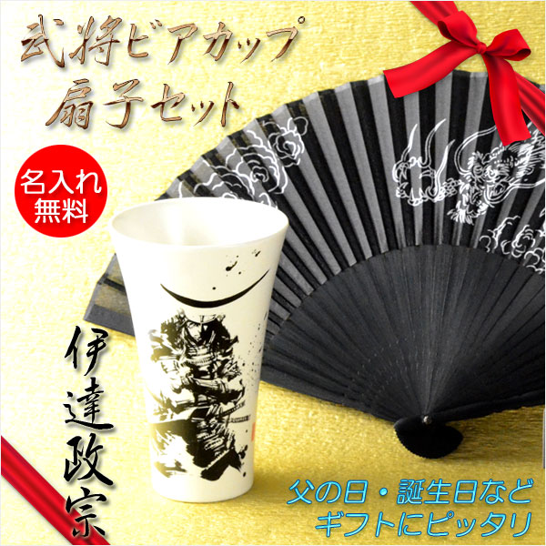 父の日ギフト【武将 ビアカップ・扇子セット:伊達政宗 名入れ彫刻無料】送料無料