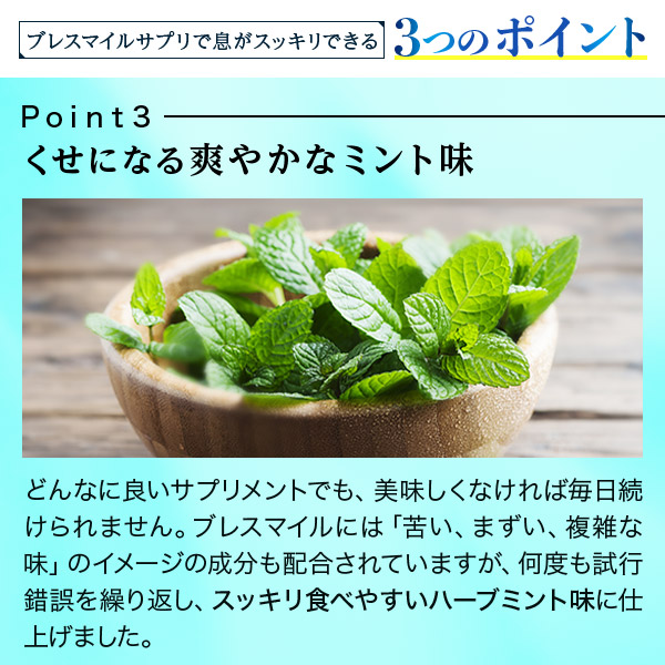 【公式】ブレスマイル|【全額返金保証】送料無料 サプリメント 33粒 ×1袋 ミント味 口臭予防 口臭対策 口臭サプリ タブレット オーラルケア エチケット 口臭ケアサプリ