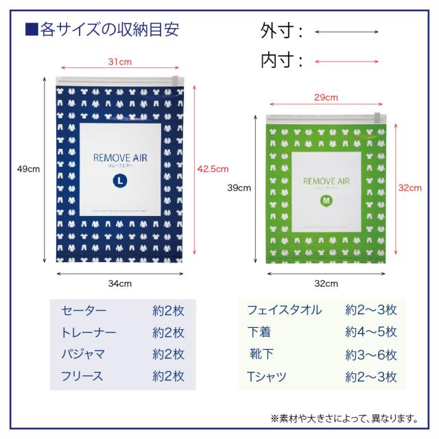 リムーブエアー 衣類圧縮袋 M10枚セット(Mサイズ10枚)衣類圧縮袋 衣類圧縮パック