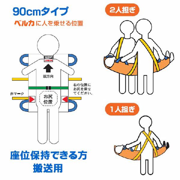 布担架 介護用ベルカ担架 BELKA-KB90 簡易 座位保持が可能な方用 KB-90 綿100% 丸洗い可能 通院介助 移動介助 外出介助 日本製
