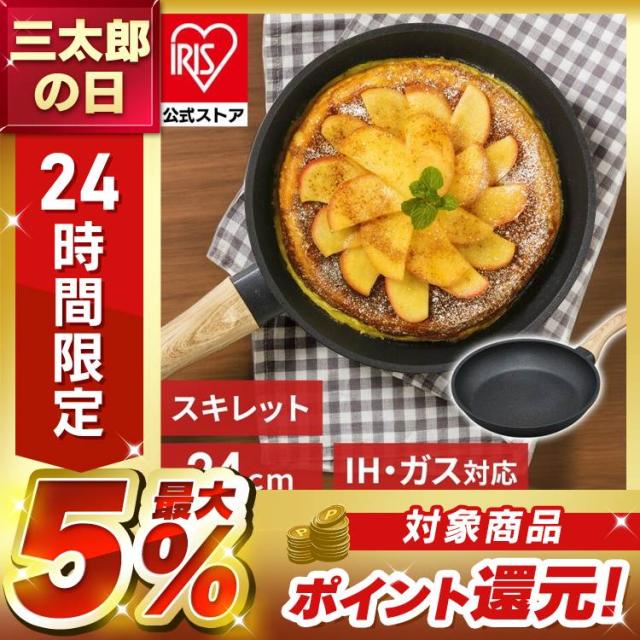 フライパン 24cm IH スキレットコートパン ブラック SKL-24IH 送料無料 すきれっと スキレット アルミ 軽い かるい おしゃれ フッ素コーティング キャンプ アウトドア 調理器具 アイリスオーヤマ