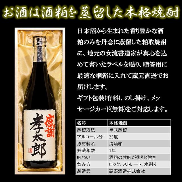 名入れ プレゼント お酒 焼酎 毛筆手書きラベル 酒粕焼酎 25度 720ml 桐箱入 新潟 高野酒造 / 送料無料 ギフト 名入れ 名前入り お酒 60代 70代 80代 成人祝い 男性 女性 誕生日 還暦祝い 古希祝い 喜寿祝い 昇進祝い 退職祝い 定年 退職 父の日 お祝い 内祝い のし可