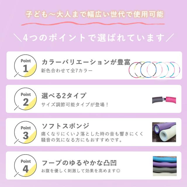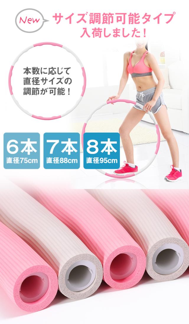 調節可能 ピンク/ブルー/ピンク×ブルー/ホワイト×ピンク/ホワイト×ブルー/ホワイト×パープル 直径:約 75cm/88cm/95cm重量:約 950gフープの太さ:約 3cmスポンジの厚み:約 0.5cm商品の特徴:●美しいウエスト作りに!体幹が鍛えられるので、お腹やせしたい方に特におすすめです!●おなかラインもすっきり●ソフトスポンジ素材なので痛くなりにくく、大きすぎない凹凸がお腹周りをやさしく刺激します。また、落とした時の音も静かなので騒音が気になる方も安心です。関連キーワード▼フラフープ 組み立て式 ダイエット器具 健康 8本 組み立て簡単 お腹痩せ お腹周り 引き締め くびれ ダイエット 大人用 ウエスト エクササイズ 運動