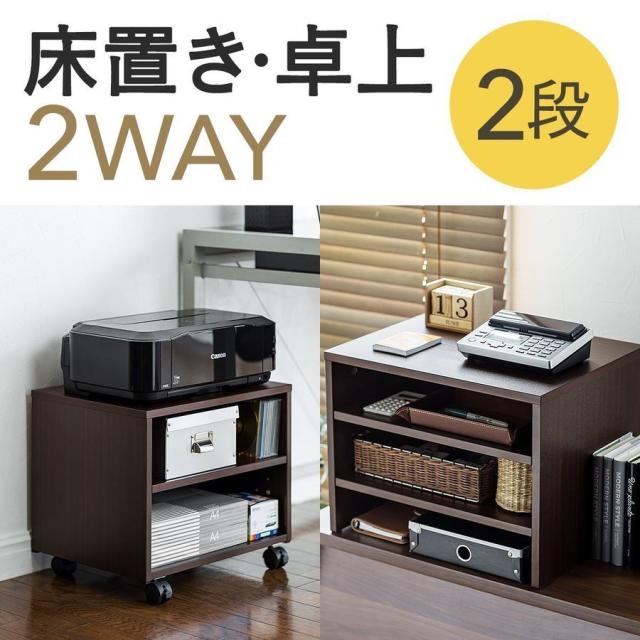 木目調 プリンター台 マルチワゴン キャスター付 高さ40cm 2段タイプ[100-PS013M]