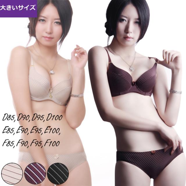ブラ ショーツ セット ブラ&ショーツ ブラセット ブラショー 大きいサイズ レディース 女性 下着 ボーダー D85 D90 D95 E85 E90 E95 E100 F85 F90 F95 F100 メール便送料無料