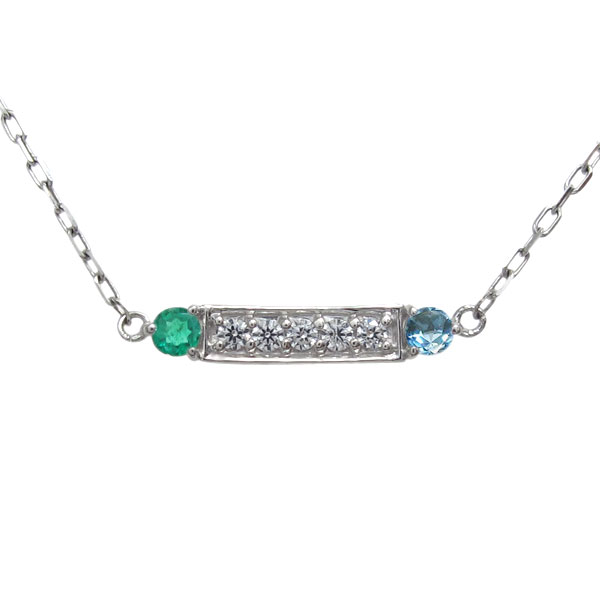 5月誕生石エメラルドを一粒使用した、プラチナ製のラインネックレス(バーネックレス)ペンダントです。